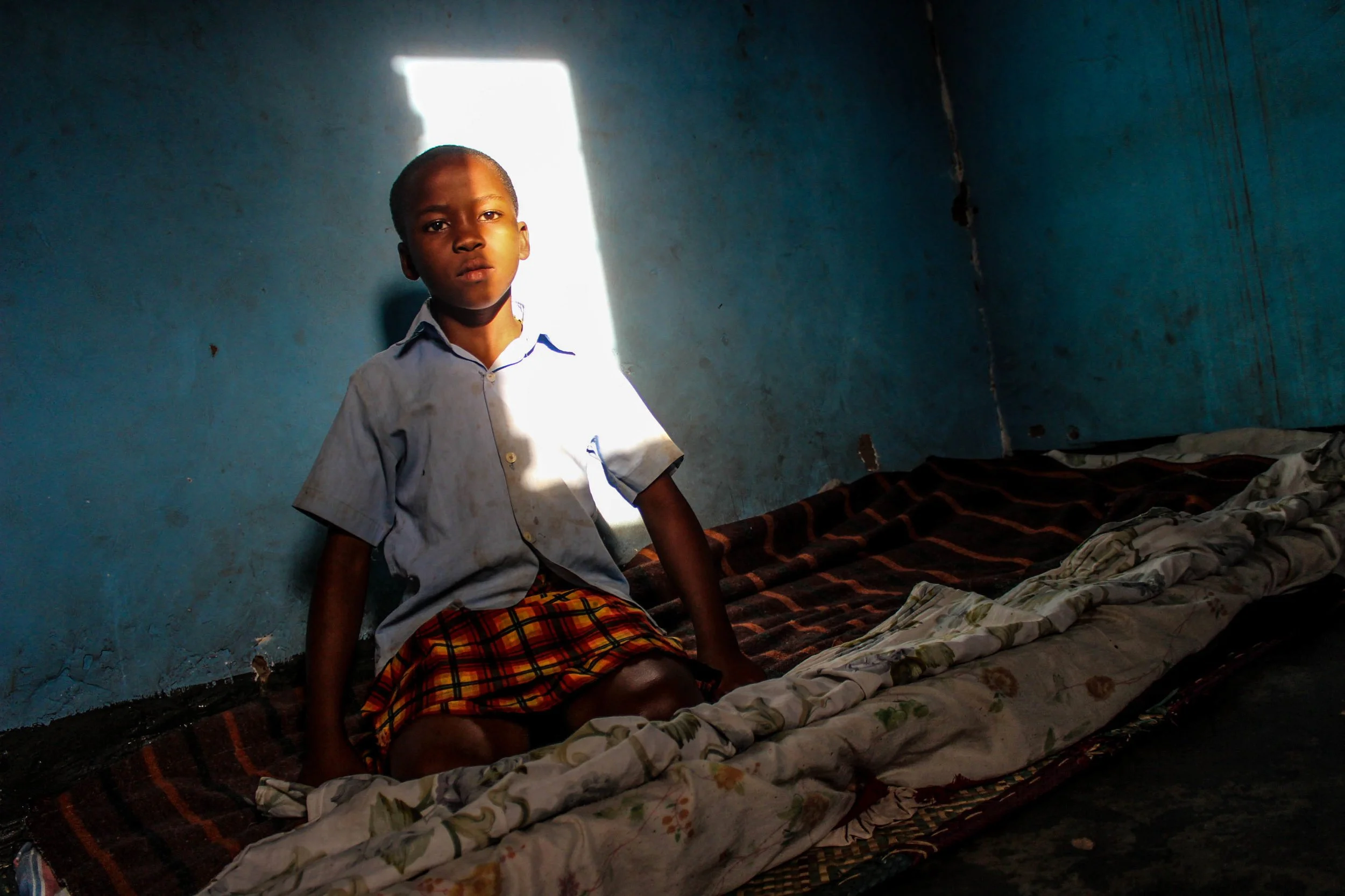 Goretti changes out of her school uniform once she returns home. This is the room Goretti and her cousins sleep in.