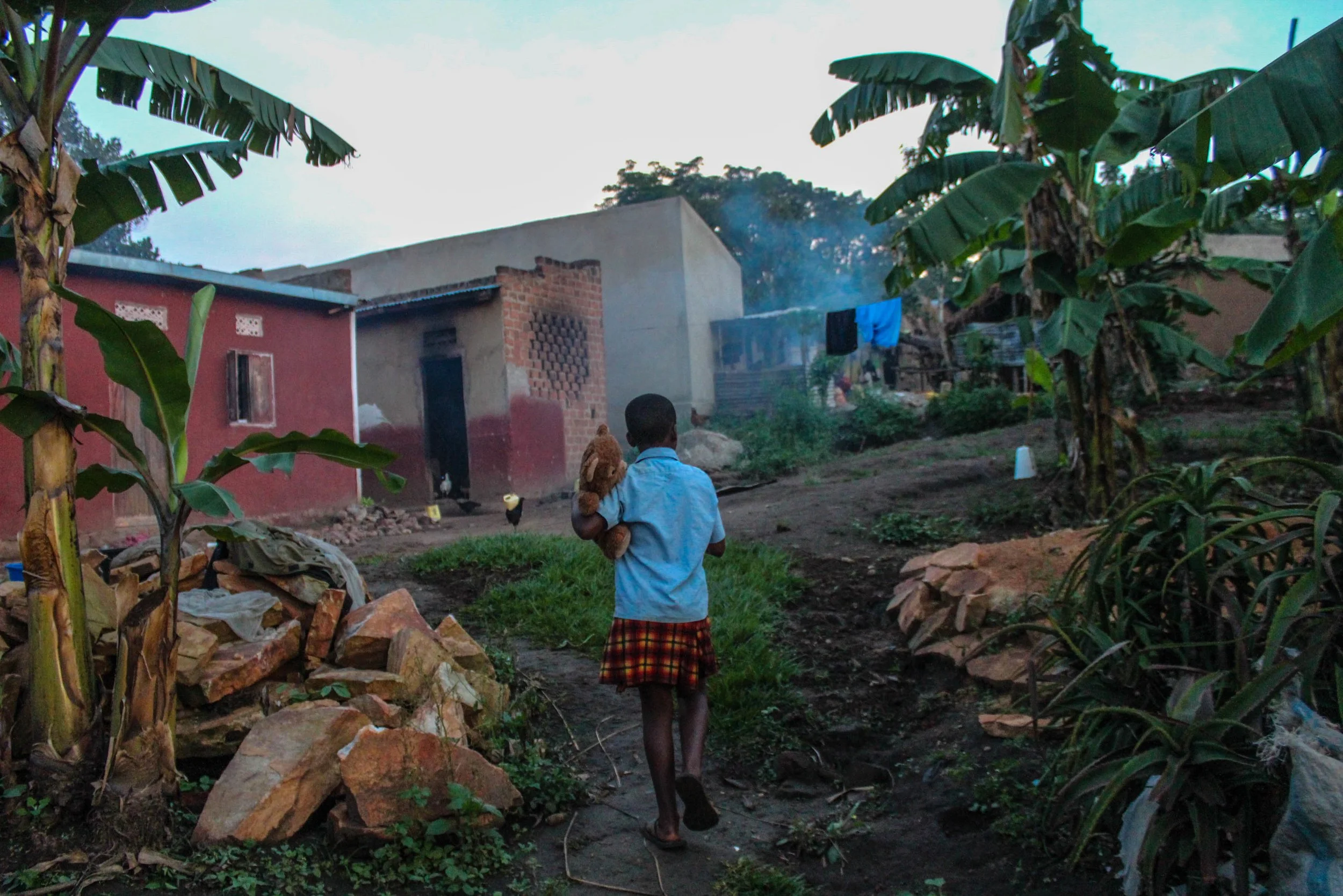 Goretti's favourite thing is her Teddy called Laeticia. She carries the raggedy teddy around with pride as it is her only possession. Her only toy. After Goretti finishes her chores she heads home to eat the dinner her aunt has prepared and start her homework by candlelight.