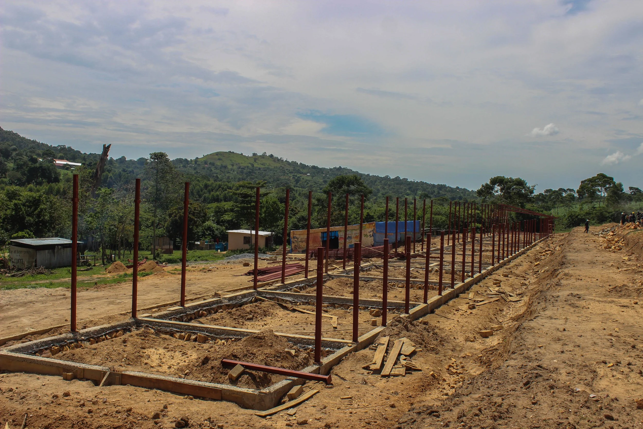It's amazing to think the almost-finished school was an overgrown field only eight months ago. This week the second block is beginning to be painted before windows will be added and the block will be completed in early December. Block three has its columns up (see below) and by mid-December the roof will go on before the brick work can begin.