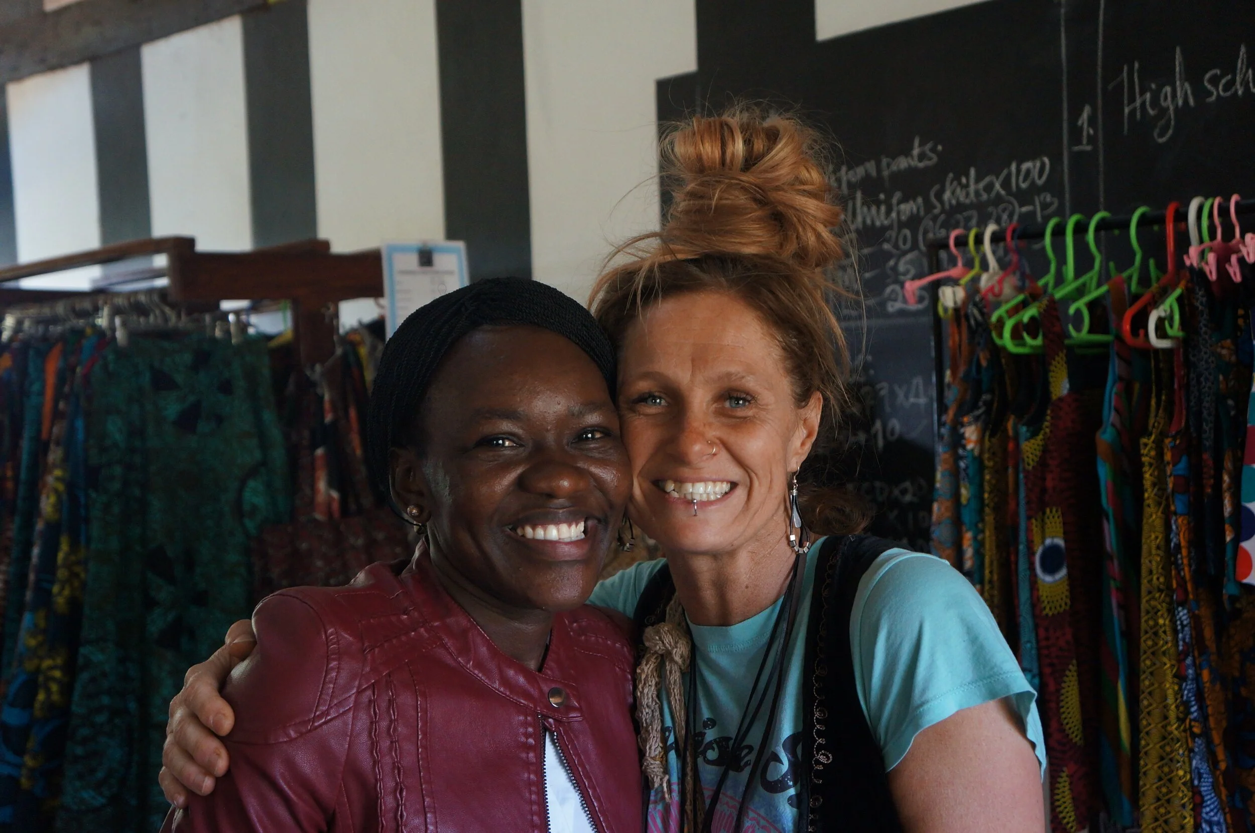 Head of Tailoring, Winnie, with Kasey in our Kumi Tailoring Rooms