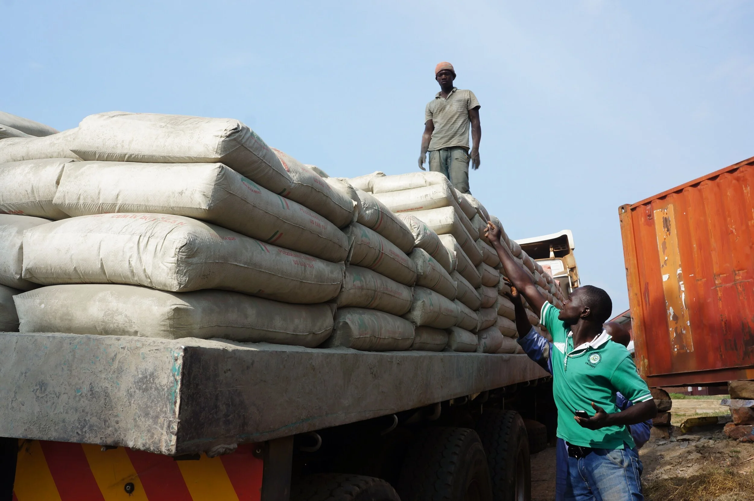 The team hard at work unloading newly ordered supplies ready for construction to resume on site.