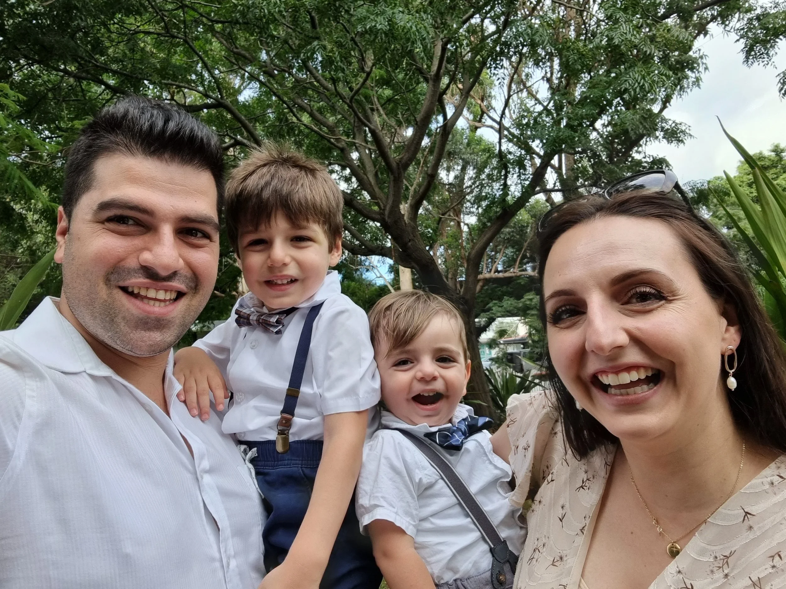 Pictured Harry, his 2 sons Kiros and Steven and wife, Tania.