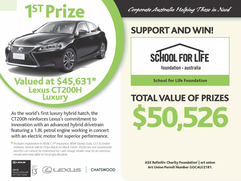 1st Prize: Lexus CT200H Luxury valued at $45,631.